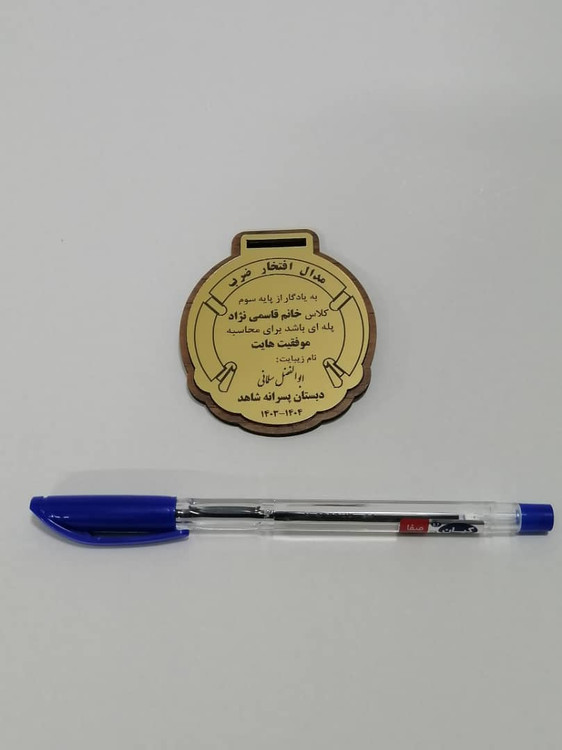 مدال جدول ضرب دو لایه جنس رویه مولتی استایل طلایی و جنس زیر چوب (ام دی اف 3 میل)